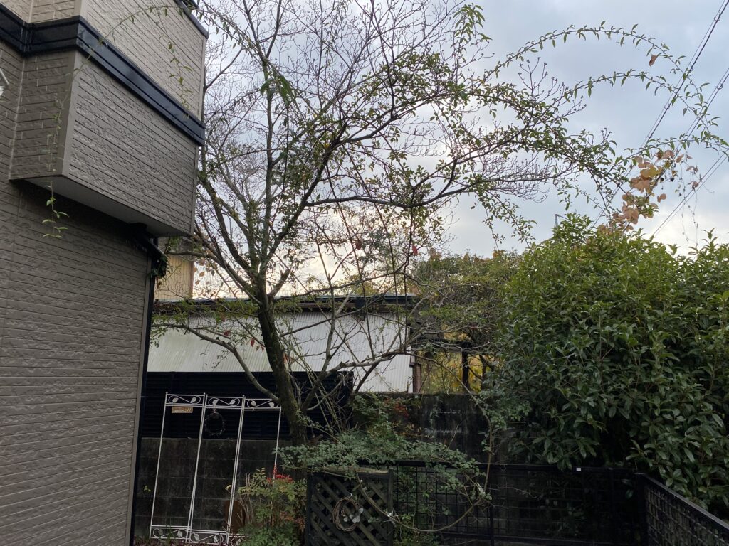 新規のお客様より剪定の依頼をいただきました。20年剪定していなかった、ハナミズキ、キンモクセイ、バラを剪定しました。